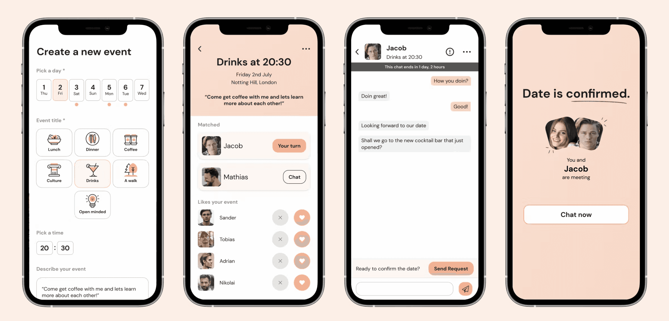 Timeling is a calendar-based social app enabling users to create meetups, explore activities, go on dates, and connect with new friends. Working within a ten-person team, the role as Head of Design focused on shaping the product by distilling insights from founders, stakeholders, and early customer groups. Since launch, the app has continued to grow and is now rolling out to its fifth country.